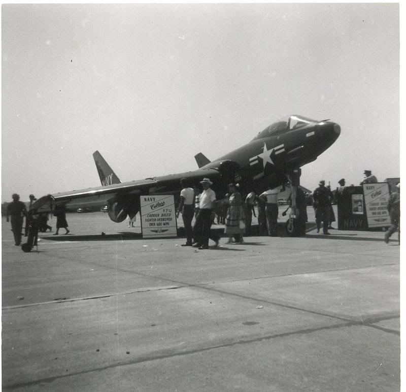 That Bulb-noses F7U-3 in the second photo broke the sound barrier in a dive during the airshow. Lt. John Ryan, USNR was it’s pilot. He performed a show that included full power, full speed flight within the fence line of the field, a feat no other jet aircraft at the show was capable of.... much to the delight of the spectators.