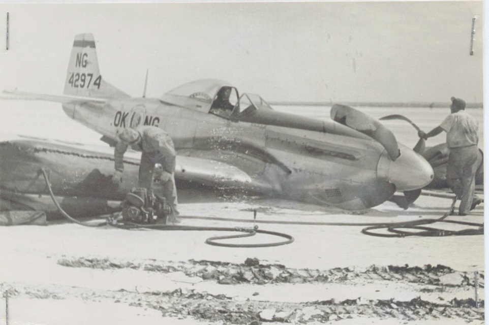 On April 3, Captain Stanley Souders, was on a training flight, when he made a forced landing in a Worchester County field 8 miles from Berlin, Maryland. The engine of his F-47 had cut out at 7,000 feet. The undercarriage of the plane was damaged extensively, but Captain Souders was uninjured.